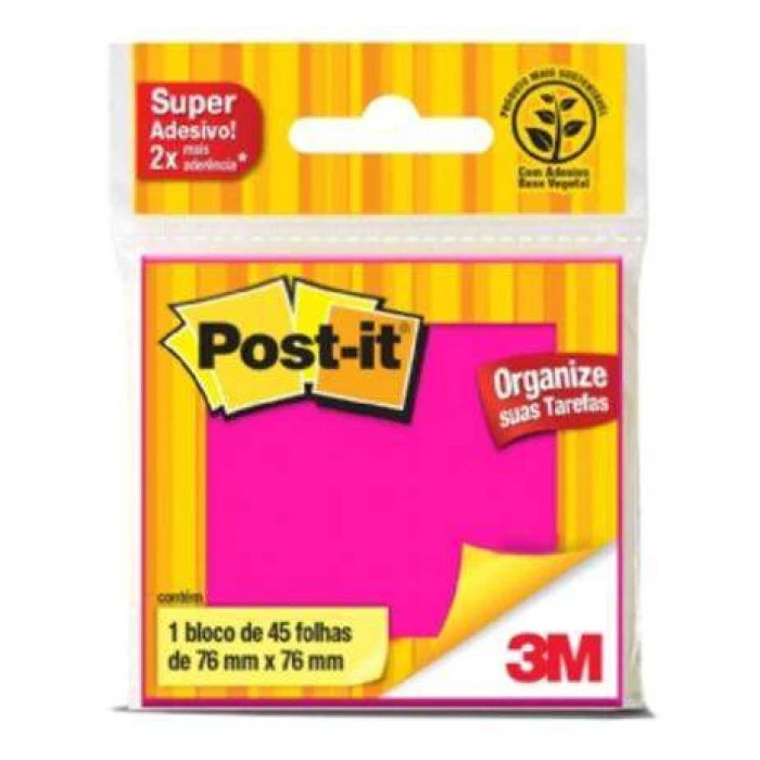 Bloco Post It 654 Neon 3M 1X45 FLS Rosa