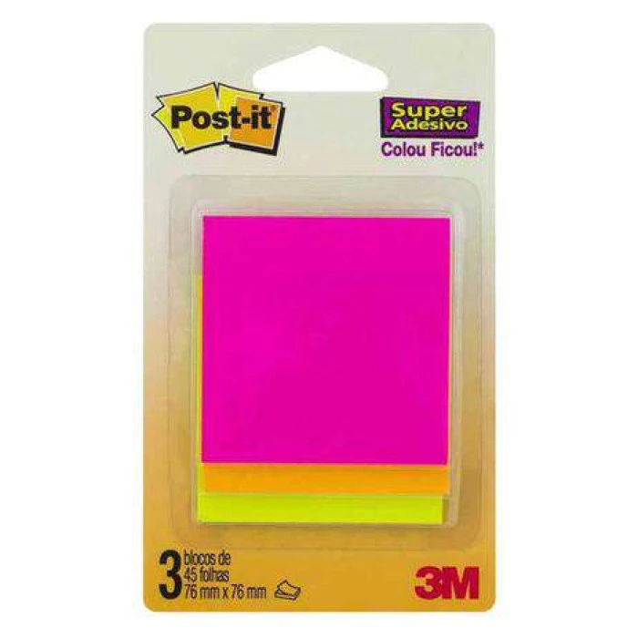 As Notas adesivas Post-it tamanho 76 mm x 76 mm são ideais para anotações e recados. Utilize três cores diferentes para cada lembrete ou tarefa. Pacote com 3 CORES