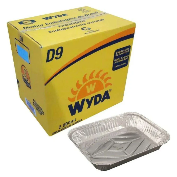 Material: AlumíniioMedidas: A4,5cm x L23,5cm x C29cmCaixa com: 100 unidadesVolume: 2.000mlTampa: cartão aluminizadoFabricante: Wyda Pratic Bandeja em aluminio com tampa em papel cartão aluminizado. Caixa com 100 unidades. Ideal para assados, e armazenamento de alimentos quentes ou frios.