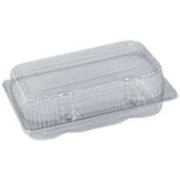 Bandeja plástica com tampa acoplada, material trasnparente e sua forma retangular e com altura ideal para lanches, bolos, tortas e salgados.