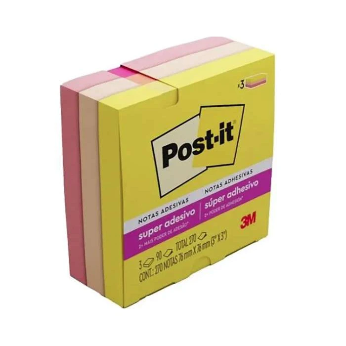 Post it 76mm X 76mm Notas C/03X90Fls Coleção Aleria Sortido Ideal para anotar recados e se organizar. - Suas folhas são reposicionáveis, pois possuem adesivo de qualidade 3M que permite que essas sejam retiradas e recolocadas sem danificar papéis ou outras superfícies. - Não deixa resíduos do adesivo.