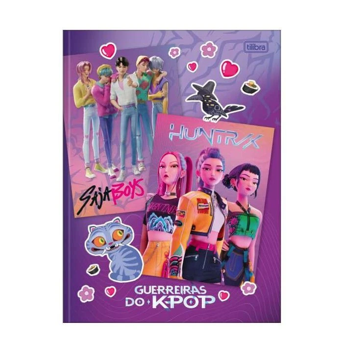 O Caderno Brochura Capa Dura 1/4 K-POP 80 Folhas possui capa dura com detalhe metalizado, parte interna decorada, folha dupla de adesivos e folhas pautadas. Ideal para o dia a dia na escola.