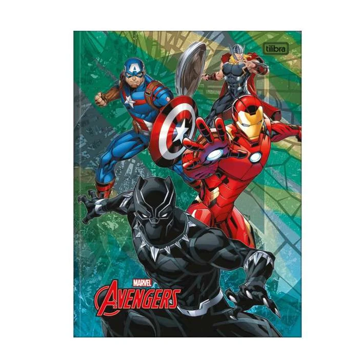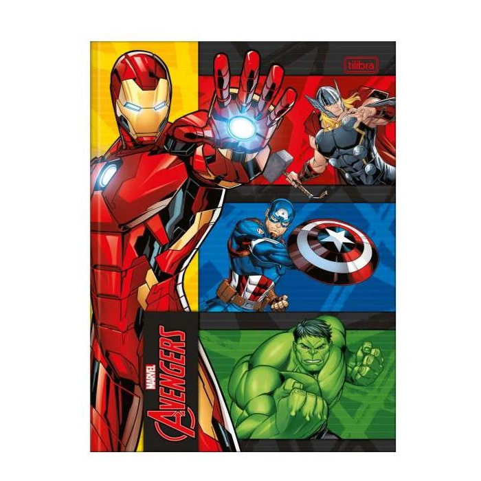 O Caderno Brochura Capa Dura Universitário Avengers 80 Folhas possui capa dura com a parte interna decorada, folha de adesivos e folhas pautadas. Ideal para o dia a dia na escola.