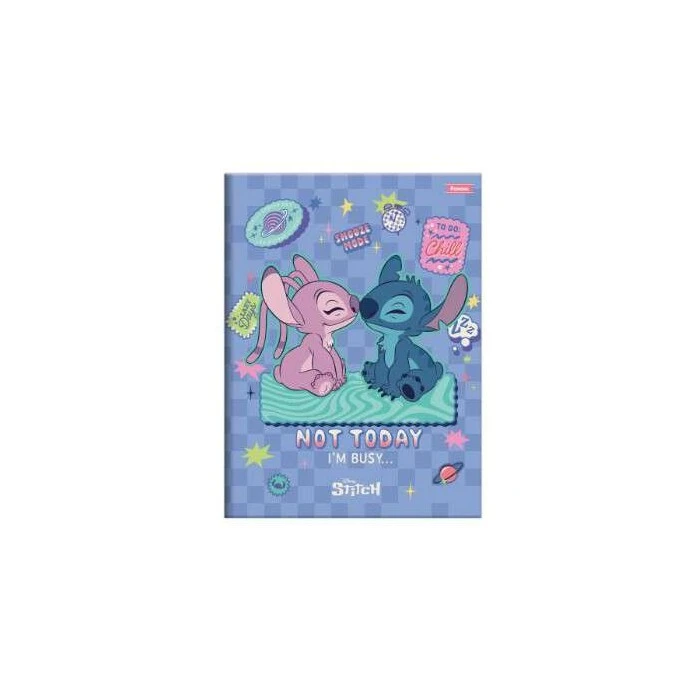 O caderno brochurão Stitch 80 folhas possui capa dura com laminação brilho e pauta básica. Ideal para o dia a dia na escola.