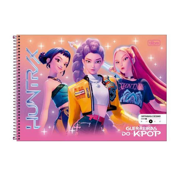 O caderno de desenho Tilibra tem capa dura com visual das Guerreiras do K-Pop, espiral, folha de adesivos e 80 folhas brancas para liberar a imaginação. Adquira já o seu!