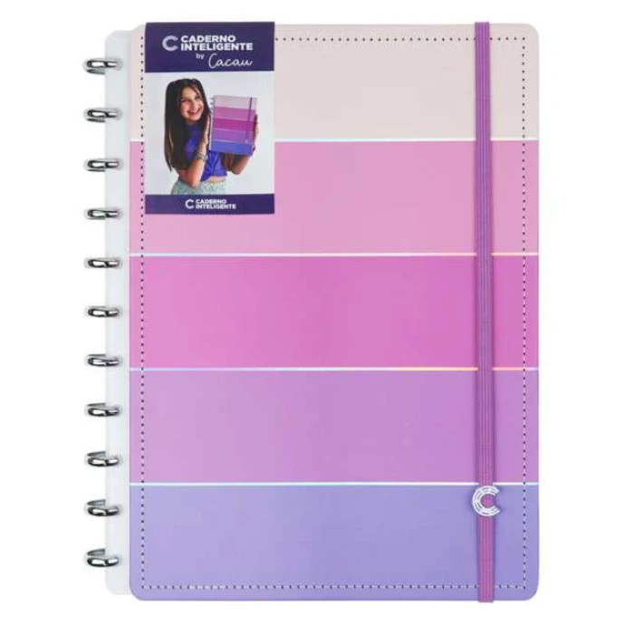 Apresentamos o caderno premium da linha Caderno Inteligente em parceria com a influenciadora Cacau Hax: o modelo Unique byCacau traz design sofisticado e funcionalidade avançada. O acabamento é em hot-stamping holográfico, oferecendo visual elegante e moderno. Caderno Inteligente