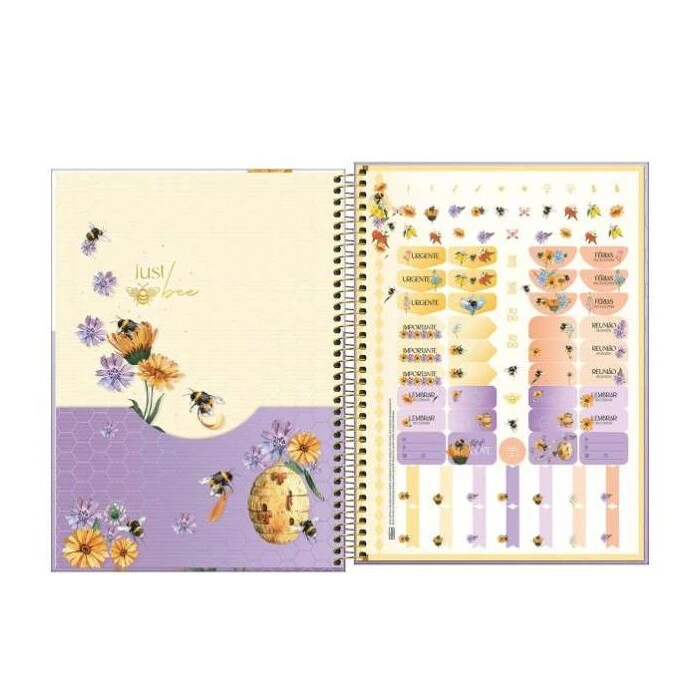 O Caderno Espiral Capa Dura Universitário 1 Matéria Honey Bee 80 Folhas possui capa dura com detalhe metalizado, parte interna decorada, bolsa de papel decorada para guardar trabalhos e anotações, folha com adesivos funcionais, folhas pautadas decoradas e espiral colorido. Ideal para o dia a dia na escola ou na faculdade.