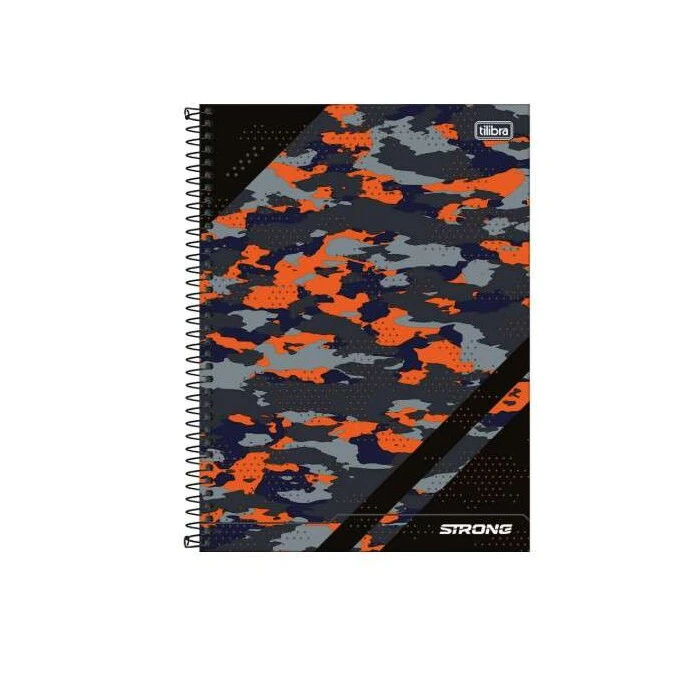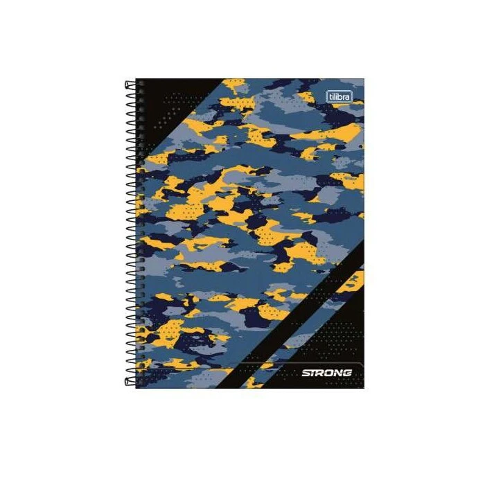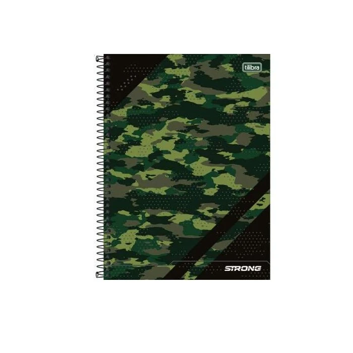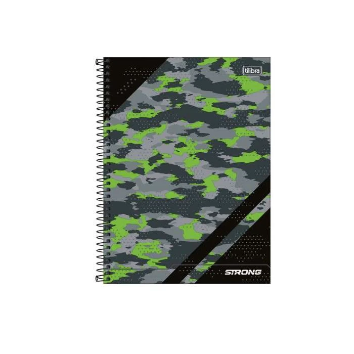 O Caderno Espiral Capa Dura Universitário 20 Matérias Strong 320 Folhas da Tilibra é perfeito para você que busca uma opção para organização da rotina de estudos com visual que explora diferentes estilos de cores da estampa camuflada.