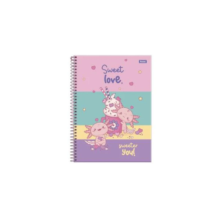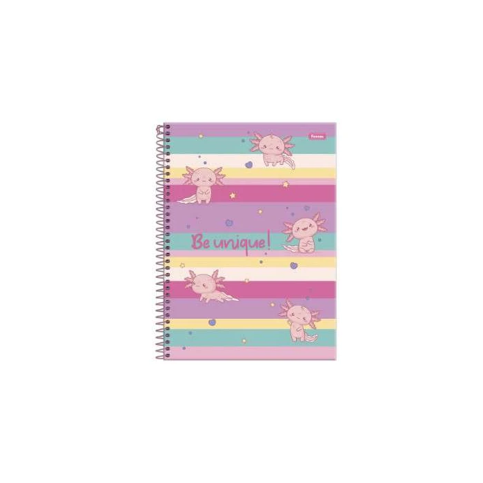 O Caderno Universitário CD 10x1 Axolove Foroni 160 traz um visual inspirado no adorável axolote, com capas em tons rosados e detalhes delicados que traduzem a fofura e personalidade desse tema (caderno grande).