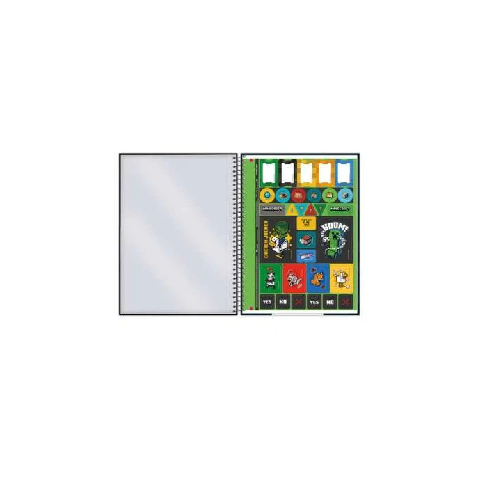 O Caderno Espiral Universitário Minecraft possui capa dura com a parte interna decorada, bolsa de papel para guardar trabalhos e anotações, folha de adesivos, folhas pautadas e espiral preto. Ideal para o dia a dia na escola ou na faculdade.