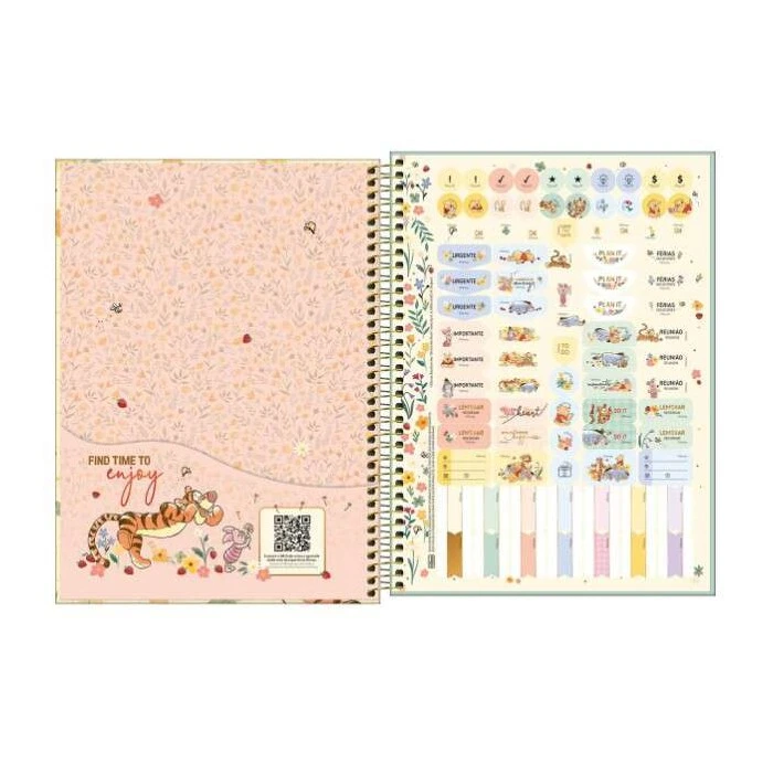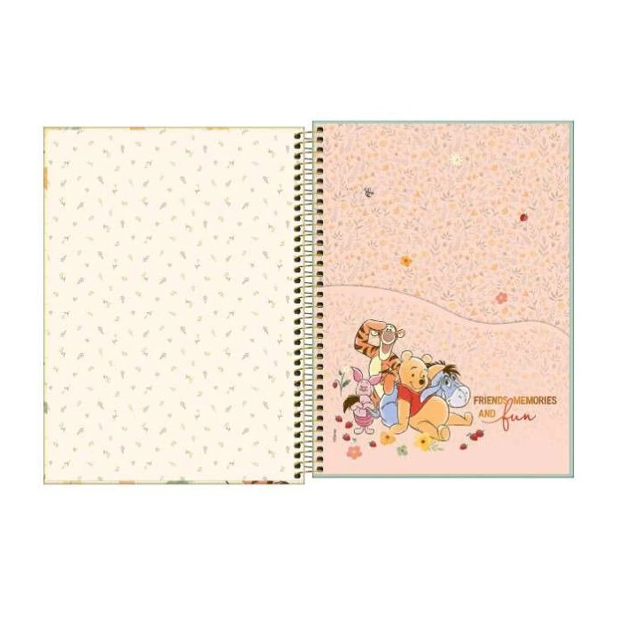 O Caderno Espiral Capa Dura Universitário 10 Matérias Pooh 160 Folhas possui capa dura com detalhe metalizado, parte interna decorada, bolsa de papel decorada para guardar trabalhos e anotações, folha com adesivos funcionais, folhas pautadas decoradas e espiral colorido. Ideal para o dia a dia na escola ou na faculdade.