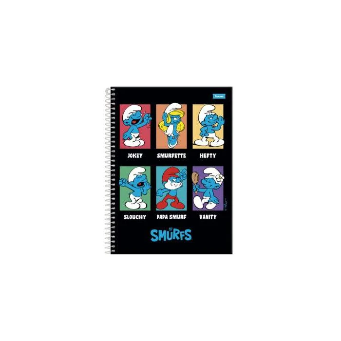 Disponível em diversas estampas da coleção Os Smurfs; escolha específica pode ser solicitada nas observações do pedido, caso contrário, o envio será feito conforme a disponibilidade em estoque (caderno grande).