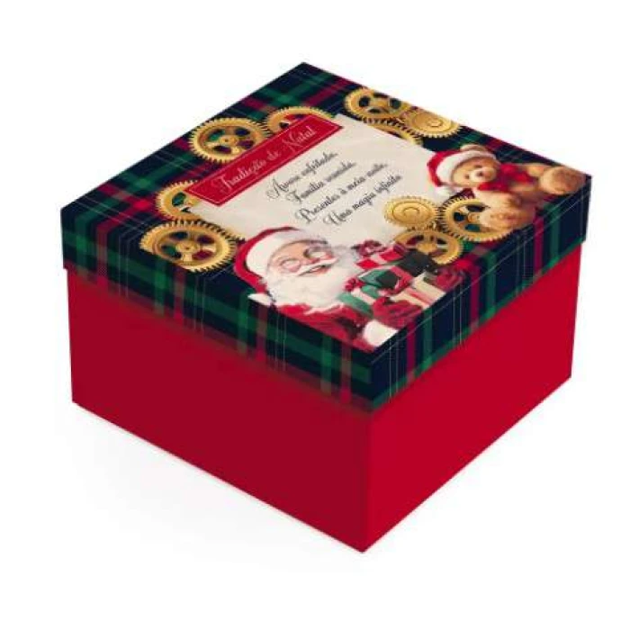 Caixa decorada com estampa natalinas que pode ser utilizada em confraternizações de final de ano, pa..