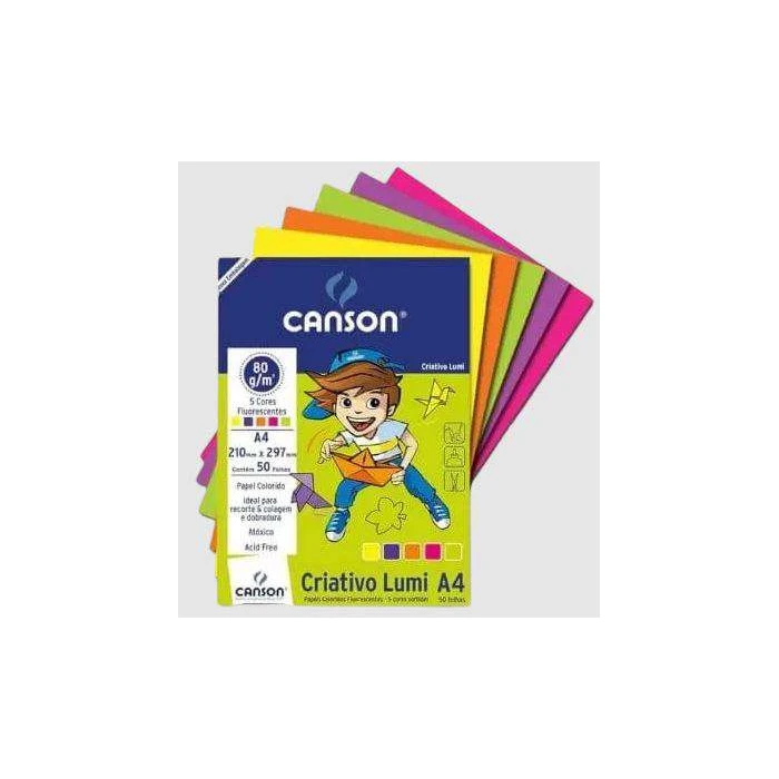 Conteúdo: Pacote de folhas coloridas fluorecentesContém 50 folhasTamanho A4Cores: 5 coresGramatura: 75grFabricante: Canson Bloco Criativo Lumi Canson, com gramatura 75g/m², no tamanho A4, 50 folhas e 5 cores fluorecentes diferentes. Fabricado por Canson.