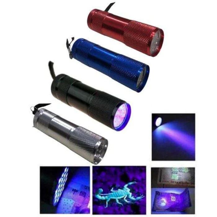 Lanterna identificadora de notas falsas. Ideal para Real e Dólar. Para identificar, basta direcionar a lanterna de luz negra para a nota que aparece-rá a marca d'água.