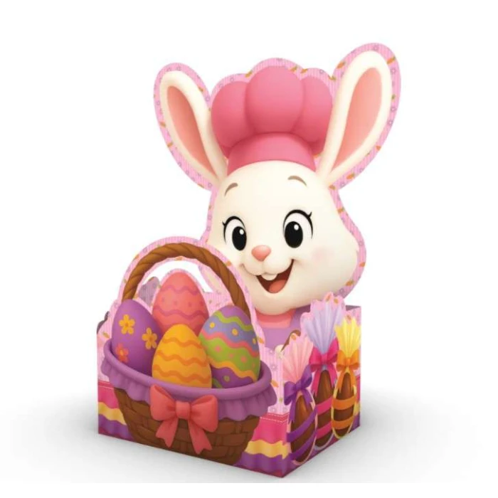 Uma maneira de deixar a sua Páscoa ainda mais linda é com a cesta em formato de cachepo com estampa de coelho. Você pode utilizá-la para encher de chocolates, ovos de páscoa, amendoas e outras guloseimas.