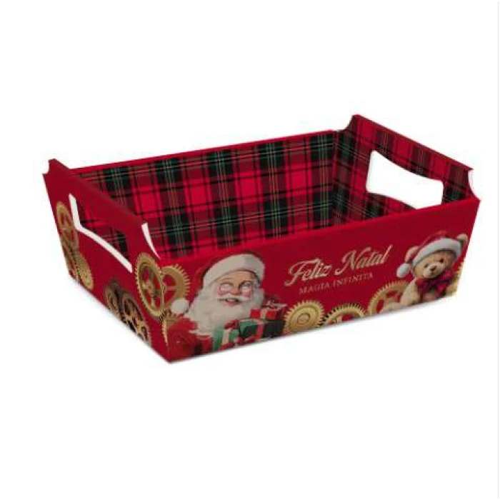 Cesta de papel decorativa natalina Cromus Magia Infinita perfeita para cartões, lembranças e presentes com encanto natalino.