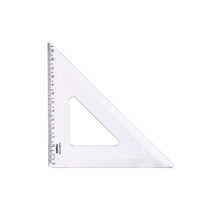 Esquadro escolar plástico acrilico, de 45 graus. Fabricado por Waleu. Muito usado para trabalhos de escola.
