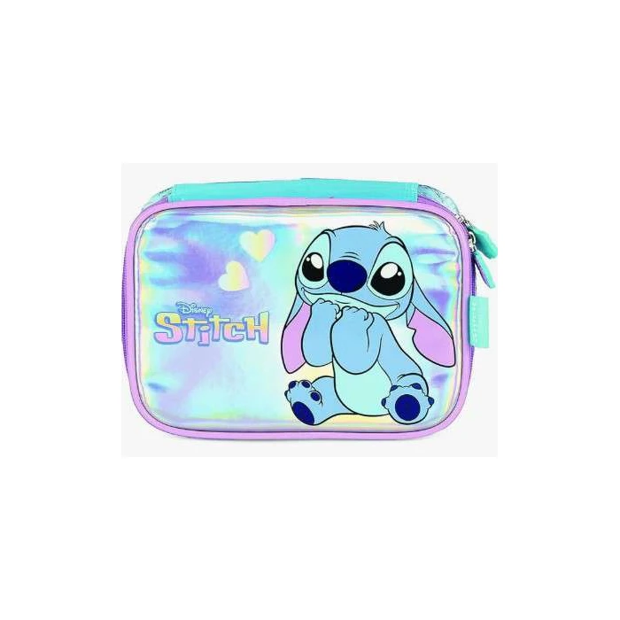 O Estojo Box Luxcel Stitch Azul (EI42414SC-AZ) é um item escolar prático, espaçoso e com design temático do personagem Stitch da Disney. Ele é ideal para organizar materiais escolares e possui um formato estruturado que facilita o acesso aos itens.