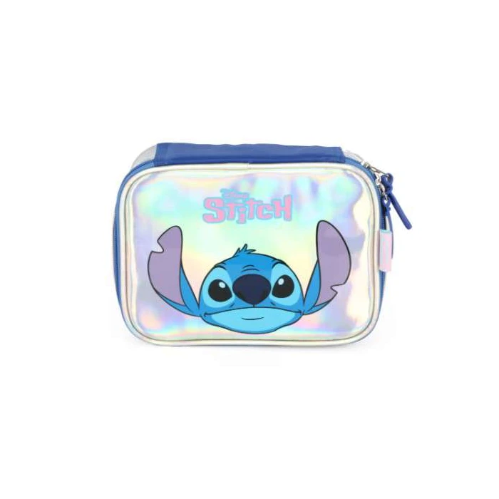 Estojo Necesser Luxcel Stitch Holográfico – Prata — estojo escolar da marca Luxcel, com design moderno e espaçoso, ideal para organizar lápis, canetas e materiais de estudo.