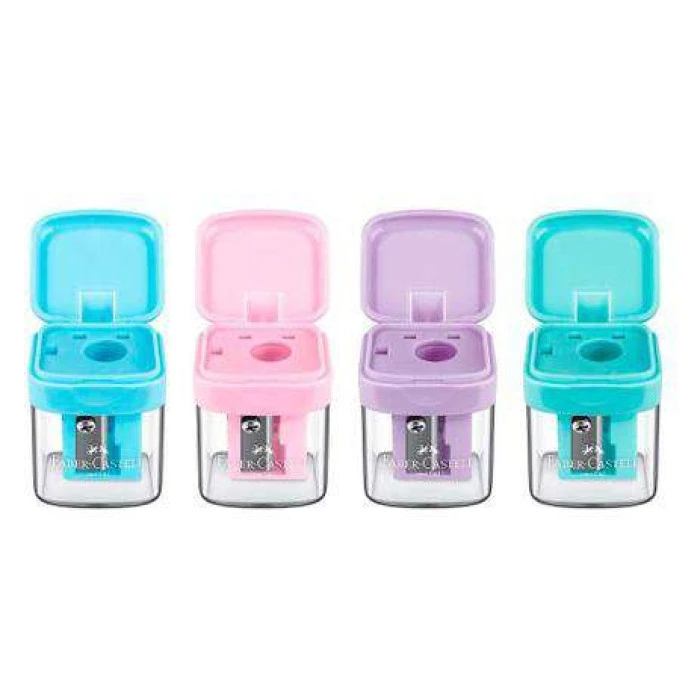 apontador com depósito tons pastel; apontador MiniBox Faber-Castell; apontador escolar pastel; apontador com coletor pastel; apontador lápis grafite; apontador lápis de cor; apontador compacto pastel; apontador portátil pastel; apontador eficiente com depósito; apontador lâmina de aço; apontador design em tons pastel; apontador Faber-Castell pastel; apontador para estojo escolar; apontador portátil para lápis; apontador com tampa flip-top; apontador para escritório; apontador acessório artístico; apontador funcional pastel; apontador coleta resíduos.