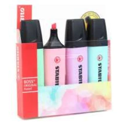 Marca texto em cores pastel apresentado em estojo plástico com 6 cores sortidas. Ponta chanfrada com..