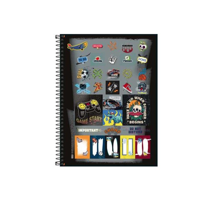 O Caderno Espiral Capa Dura Universitário 10 Matérias Hide 160 Folhas possui capa dura com a parte interna decorada, bolsa plástica para guardar trabalhos e anotações, folha com adesivos funcionais, folhas pautadas e espiral colorido. Ideal para o dia a dia na escola ou na faculdade.