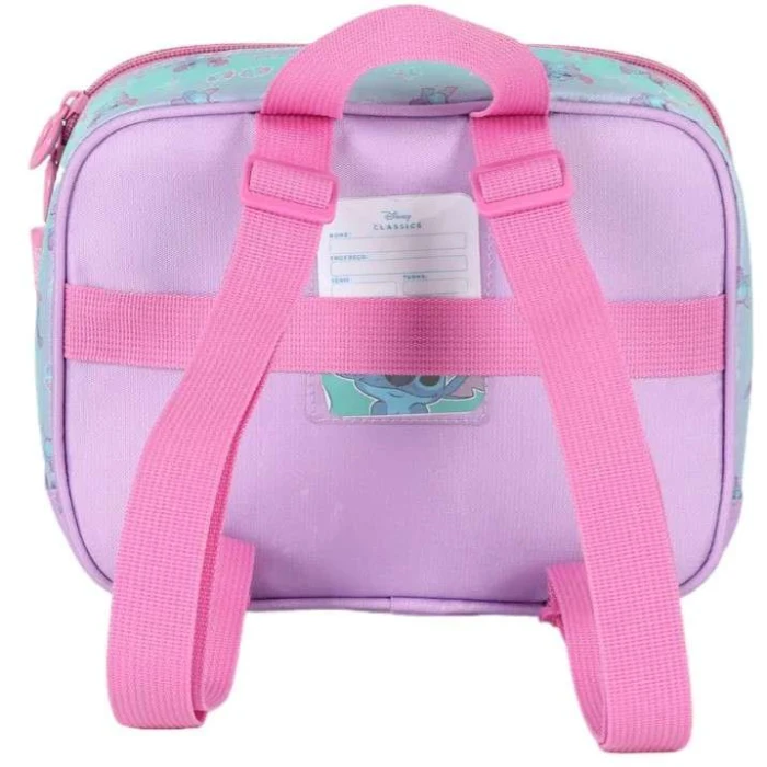 Com acabamento em tons de lilás e detalhes fofos do Stitch, a lancheira apresenta um visual divertido e encantador, ideal para crianças que adoram produtos temáticos.