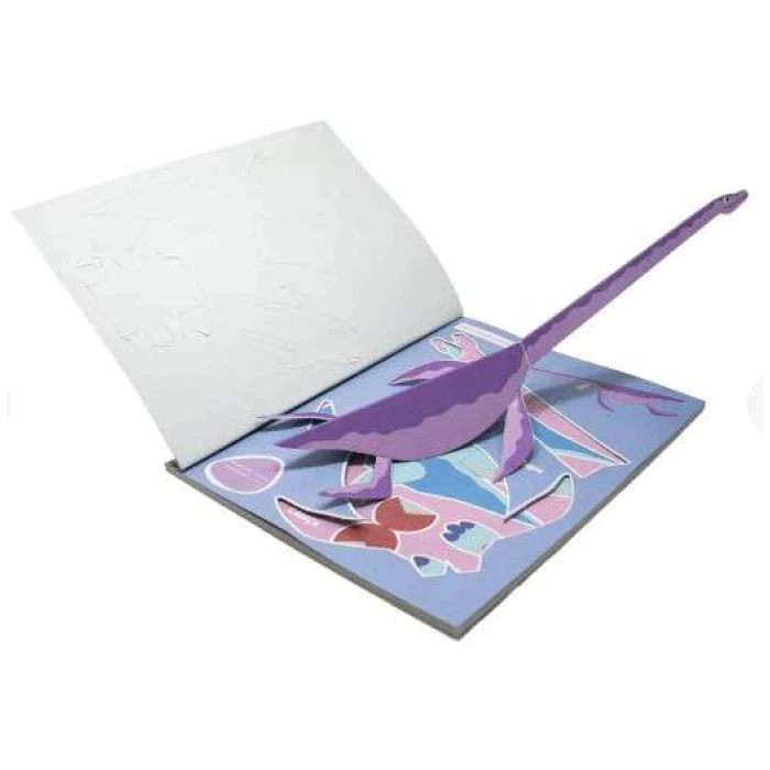 Livro interativo Amigos de Papel - Uma Aventura 3D: Dinossauros, com páginas que ganham vida em 3D, estimulando a imaginação e o aprendizado das crianças sobre o mundo dos dinossauros.