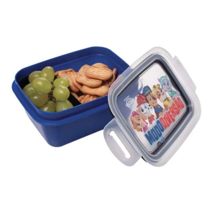 Marmita Plasútil Patrulha Canina 630 ml com tampa vedante e trava lateral, prática, segura e ideal para armazenar refeições e lanches infantis.