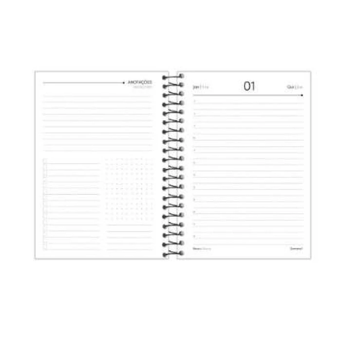 A Agenda Espiral Cliff tem visão de 1 dia por página exceto sábado e domingo, 4 opções de capa em polipropileno, com 176 folhas, no formato 117x164. Ideal para a organização do dia a dia.