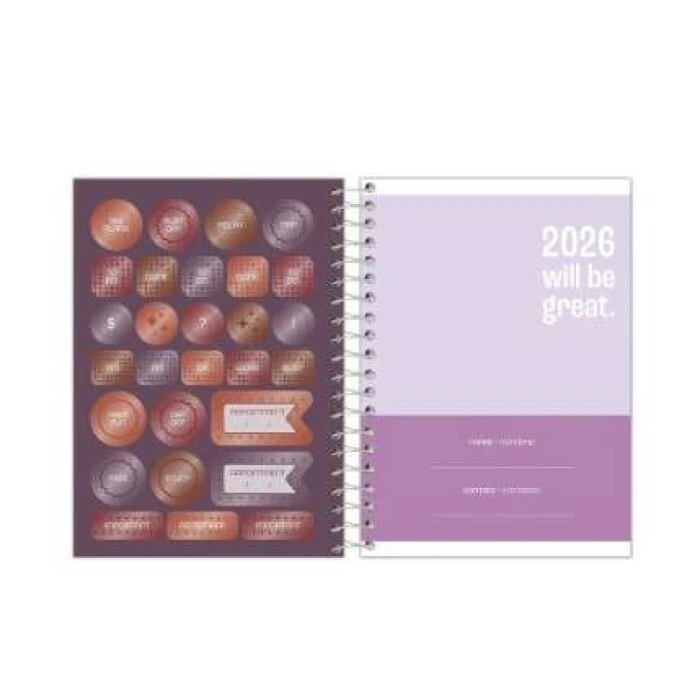 - Design e Capa: Capa dura com laminação brilho, espiral metalizado. A capa única é atraente e sofisticada, com um tons pasteis elegante.