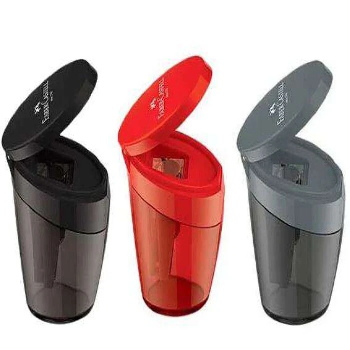 Apontador com depósito para maior praticidade, lâmina de aço temperado, tampa flip top. disponível nas cores vermelho, preto e cinza.