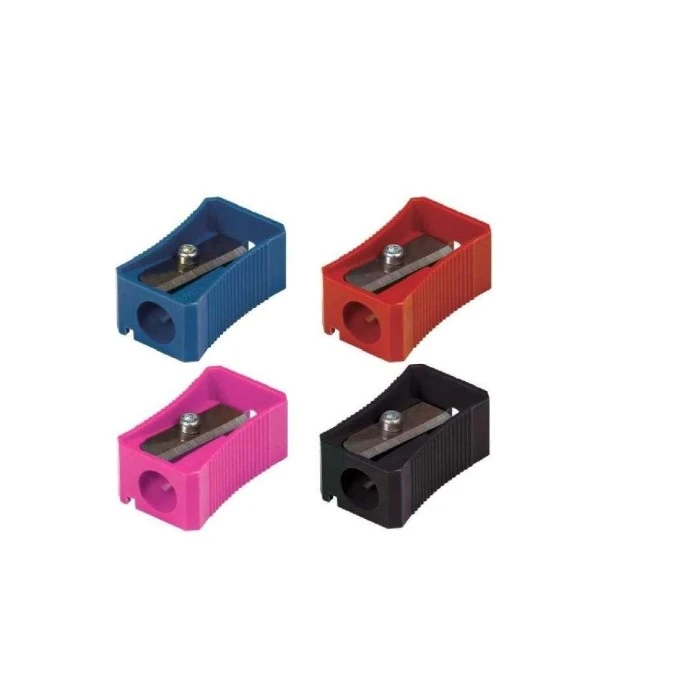 Apontador simples Faber Castell. Pode ser utilizado nos apontadores com depósito de lata. Cores sortidas no blister.