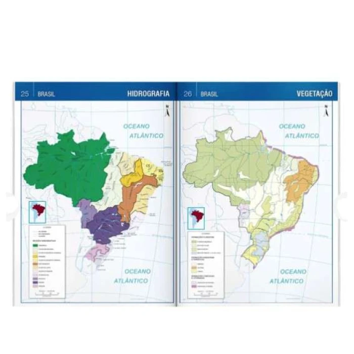 Este Atlas foi elaborado com cuidadosa pesquisa especializada, utilizando fontes nacionais e estrangeiras para trazer até você, leitor, um conteúdo conciso e atualizado. Aqui você encontra mapas detalhados dos planisférios, dos continentes e do Brasil - Regiões e Estados -, além de informações sobre astronomia e as camadas da Terra.