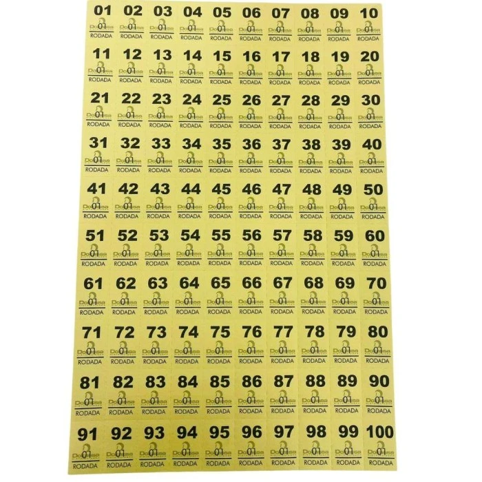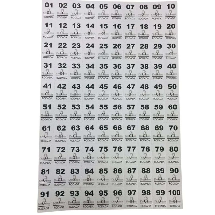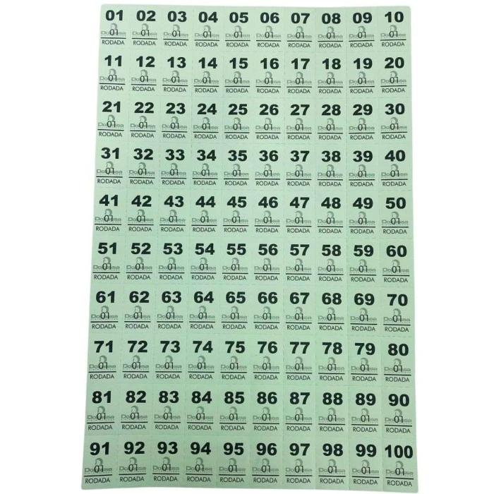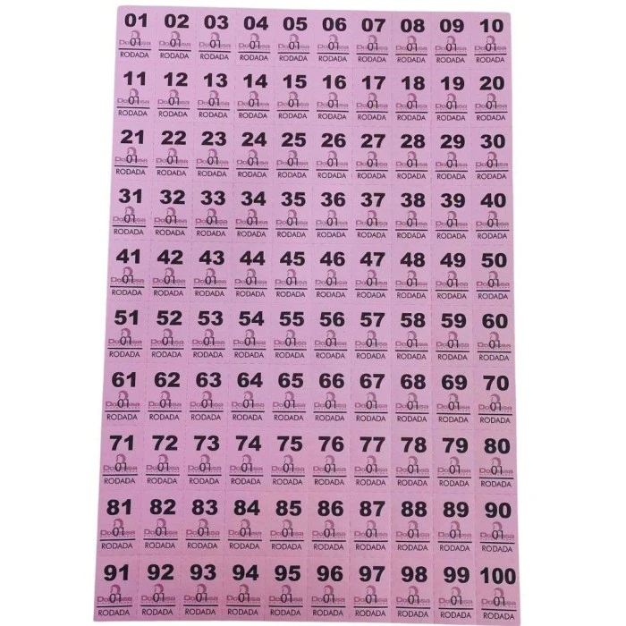 Bloco de números para roda da fortuna, com 25 folhas, picotadas com números de 1 a 100.