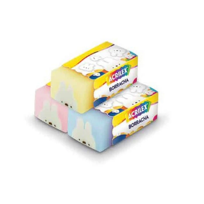 Borracha escolar ideal para carregar no seu estojo que apaga escrita com grafite tradicional.