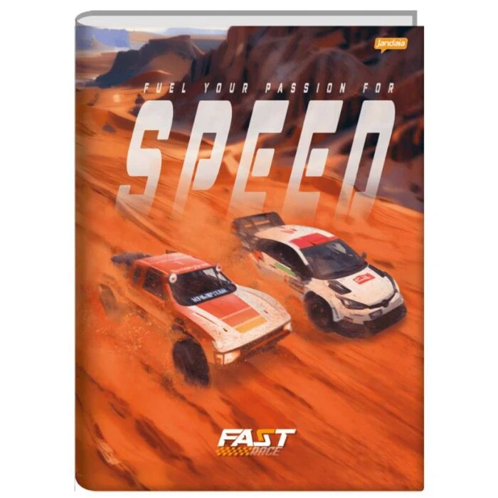 Palavras-chave: caderno grande; caderno brochurão; caderno 80 folhas; caderno pautado; caderno capa dura; caderno espiral; caderno Fast Race; coleção Fast Race; caderno Jandaia; material escolar; caderno para anotações; papelaria escolar; caderno temático; caderno universitário; caderno adrenalina.