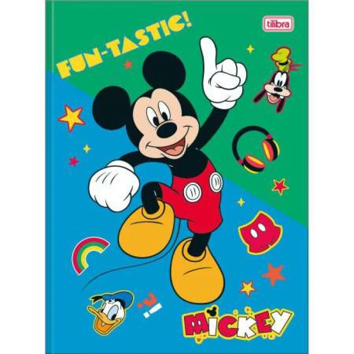 O Caderno Brochura Capa Dura Universitário Mickey 80 Folhas possui capa dura com a parte interna decorada, folha dupla de adesivos e folhas pautadas. Ideal para o dia a dia na escola.
