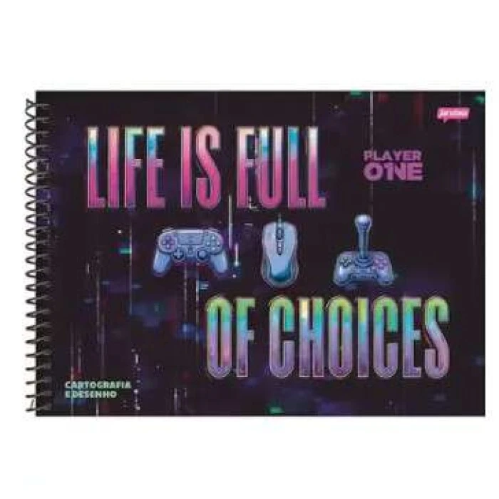 Palavras-chave: caderno de desenho; caderno grande; caderno 80 folhas; caderno sem pauta; caderno espiral; caderno capa dura; caderno Player; coleção Player; caderno Jandaia; caderno gamer; caderno artístico; caderno criativo; material escolar; papelaria escolar; caderno para desenho.