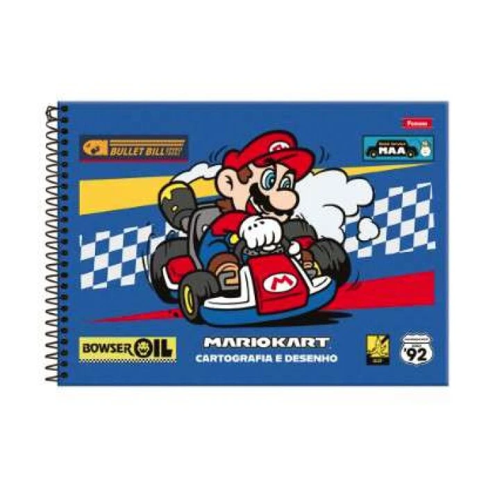O caderno de cartografia e desenho espiral Super Mario 80 folhas possui capa dura com laminação brilho, espiral preto e folhas sem pautas. Ideal para o dia a dia na escola, auxiliando o aluno nas atividades de desenho e colorir.
