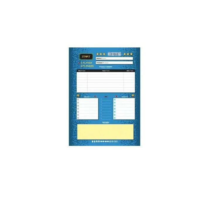O Caderno Universitário Bits Jandaia apresenta o tema oficial Bits, inspirado no universo digital e tecnológico, com capas que exploram elementos gráficos pixelados e padrões geométricos, transmitindo modernidade e estilo conectado. Ideal para quem gosta de estudar com um toque criativo e atual (caderno grande).