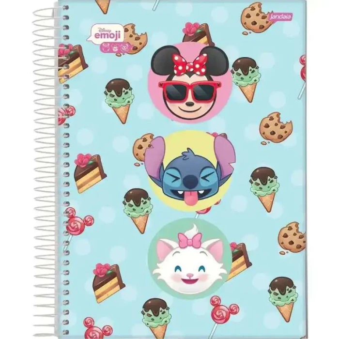 O Caderno Universitário Disney Emoji Jandaia apresenta o tema oficial Disney Emoji, com capas que trazem os personagens Disney em versão divertida e expressiva, traduzidos no estilo emoji. Uma opção leve e atual para quem gosta de personalidade e organização nos estudos (caderno grande).