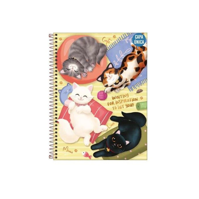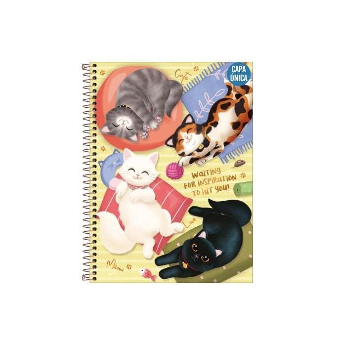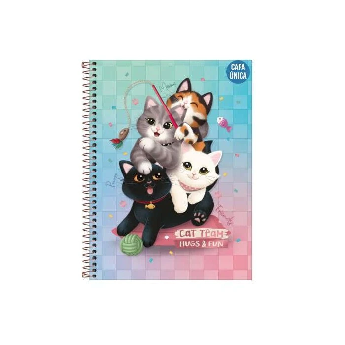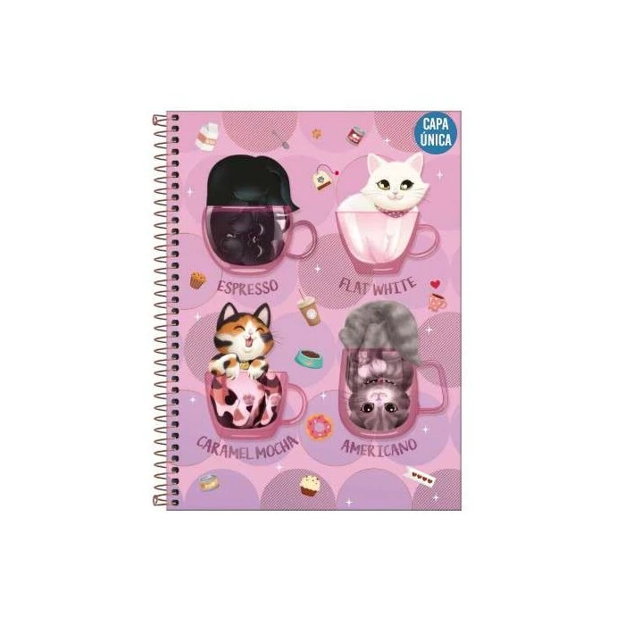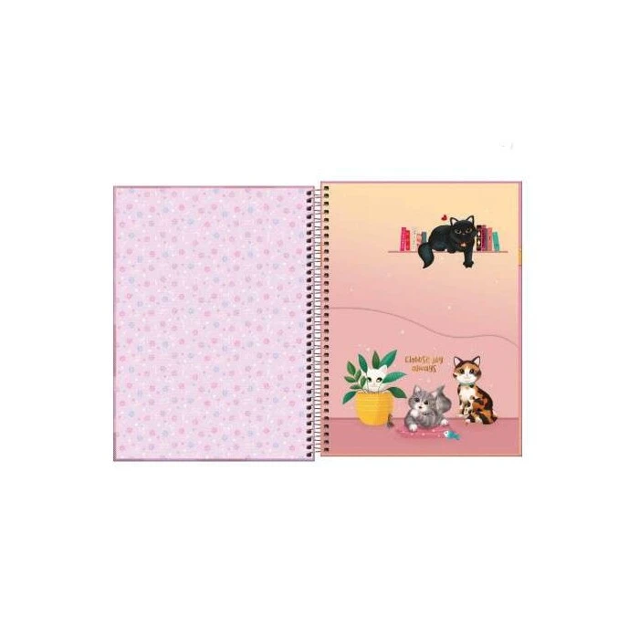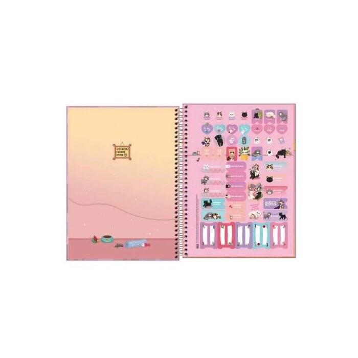O Caderno Espiral Capa Dura Universitário 1 Matéria Purrfect Cats 80 Folhas possui capa dura com a parte interna decorada, bolsa de papel decorada para guardar trabalhos e anotações, folha com adesivos funcionais, folhas pautadas decoradas e espiral colorido. Ideal para o dia a dia na escola ou na faculdade.