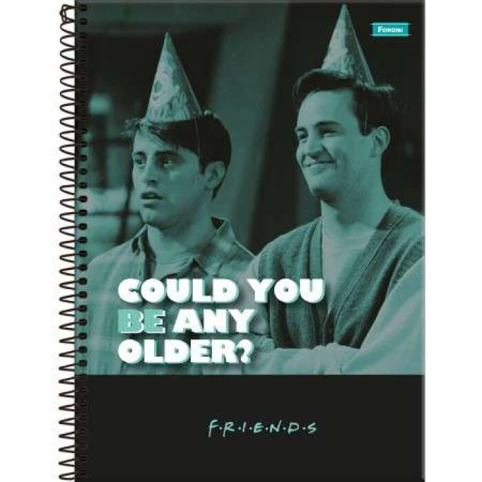 O caderno espiral universitário Friends possui capa dura com laminação fosca, guarda decorada, bolsa de papel decorada para guardar trabalhos e anotações, folha com adesivos funcionais, folhas pautadas e espiral preto. Ideal para o dia a dia na escola ou na faculdade.