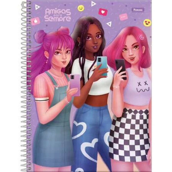 A coleção Amigas para Sempre conquista meninas cheias de atitude com suas personagens únicas. O Caderno Universitário Capa Dura está diretamente alinhado com a tendência de consumo do novo público e repleto de referências da moda contemporânea.