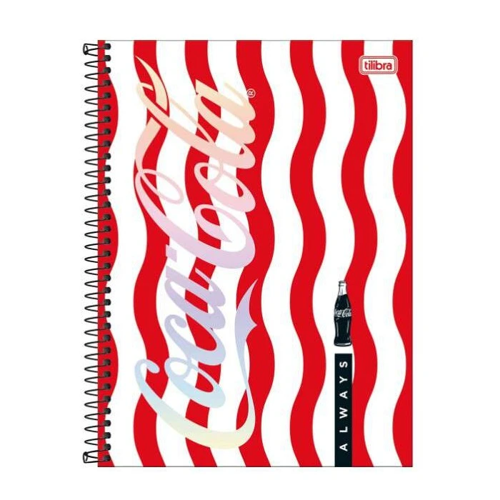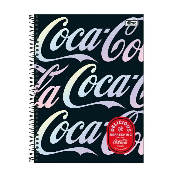 O Caderno Espiral Capa Dura Universitário 10 Matérias Coca-Cola 160 Folhas possui capa dura com acabamento metalizado, parte interna decorada, bolsa plástica para guardar trabalhos e anotações, folha com adesivos funcionais e folhas com Miolo Tilibra Connect. Ideal para o dia a dia na escola ou na faculdade.