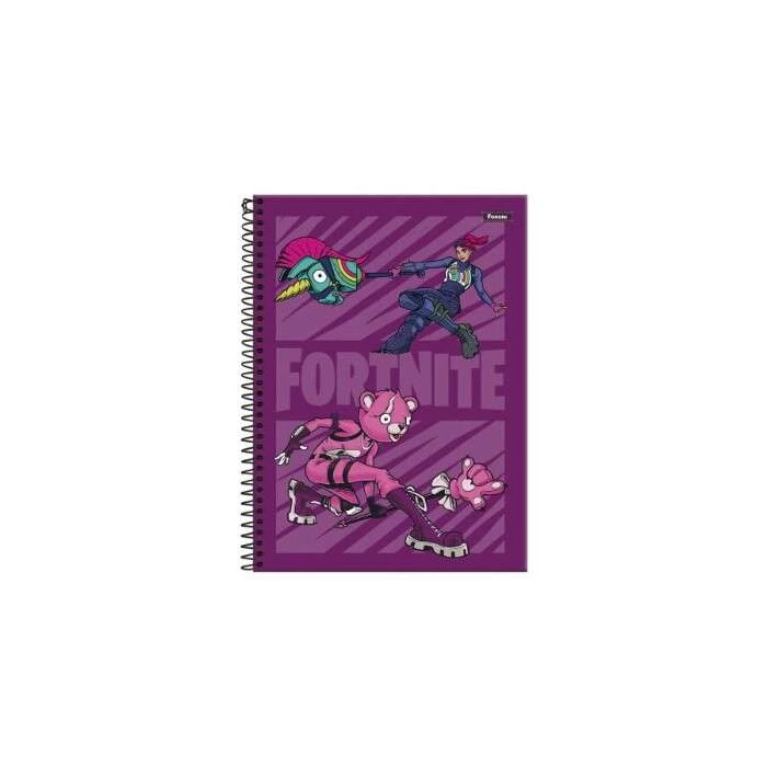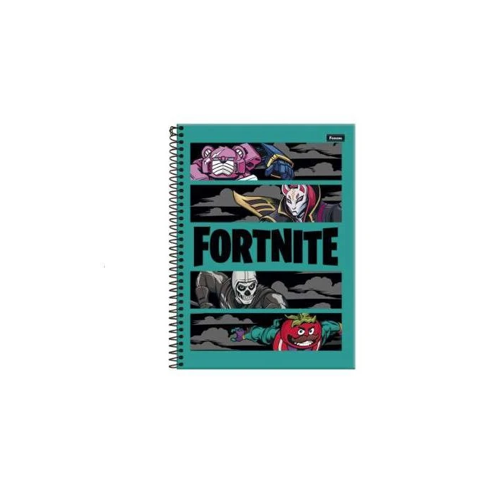 Disponível em diversas estampas da coleção Fortnite; escolha específica pode ser solicitada nas observações do pedido, caso contrário, o envio será feito conforme a disponibilidade em estoque (caderno grande).