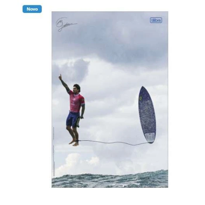 O caderno universitário Gabriel Medina da Tilibra também vem com um pôster autografado da foto que viralizou e se tornou uma das principais imagens das Olimpíadas de Paris, na França.