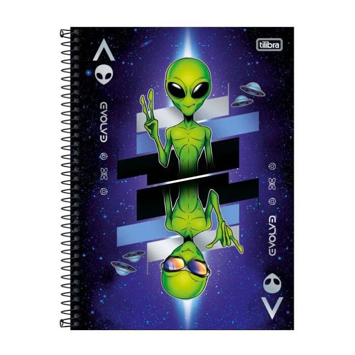 O Caderno Espiral Capa Dura Universitário Connect Orbit 10 Matérias 160 Folhas da Tilibra é perfeito para você que busca uma opção para organização da rotina de estudos com visual influenciado pela cultura pop e estética futurista.